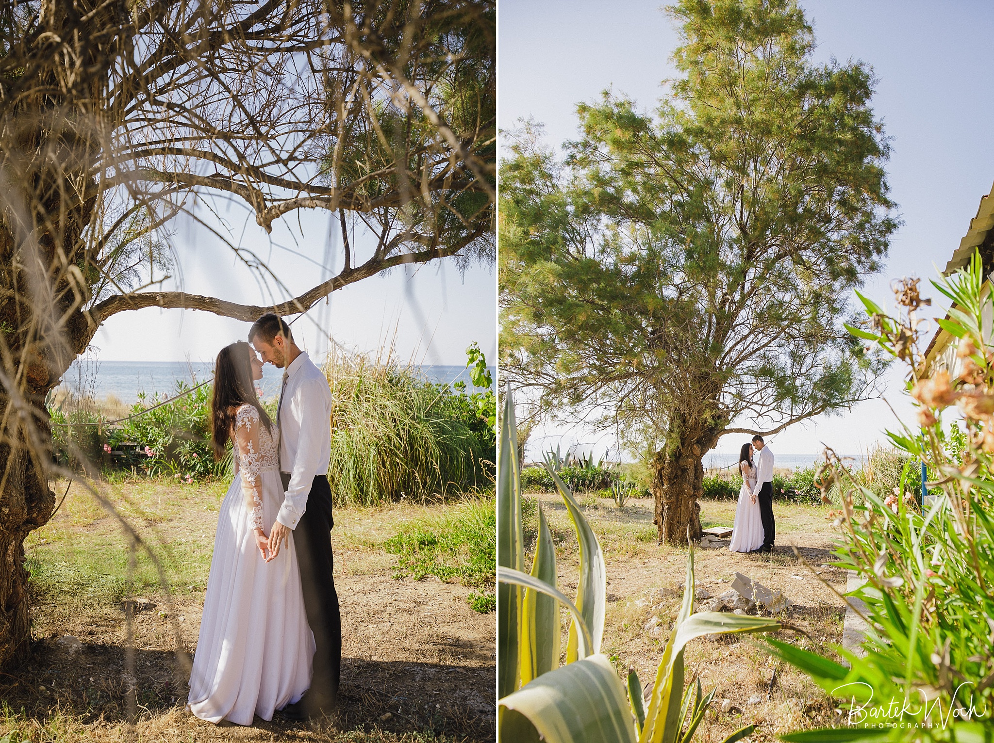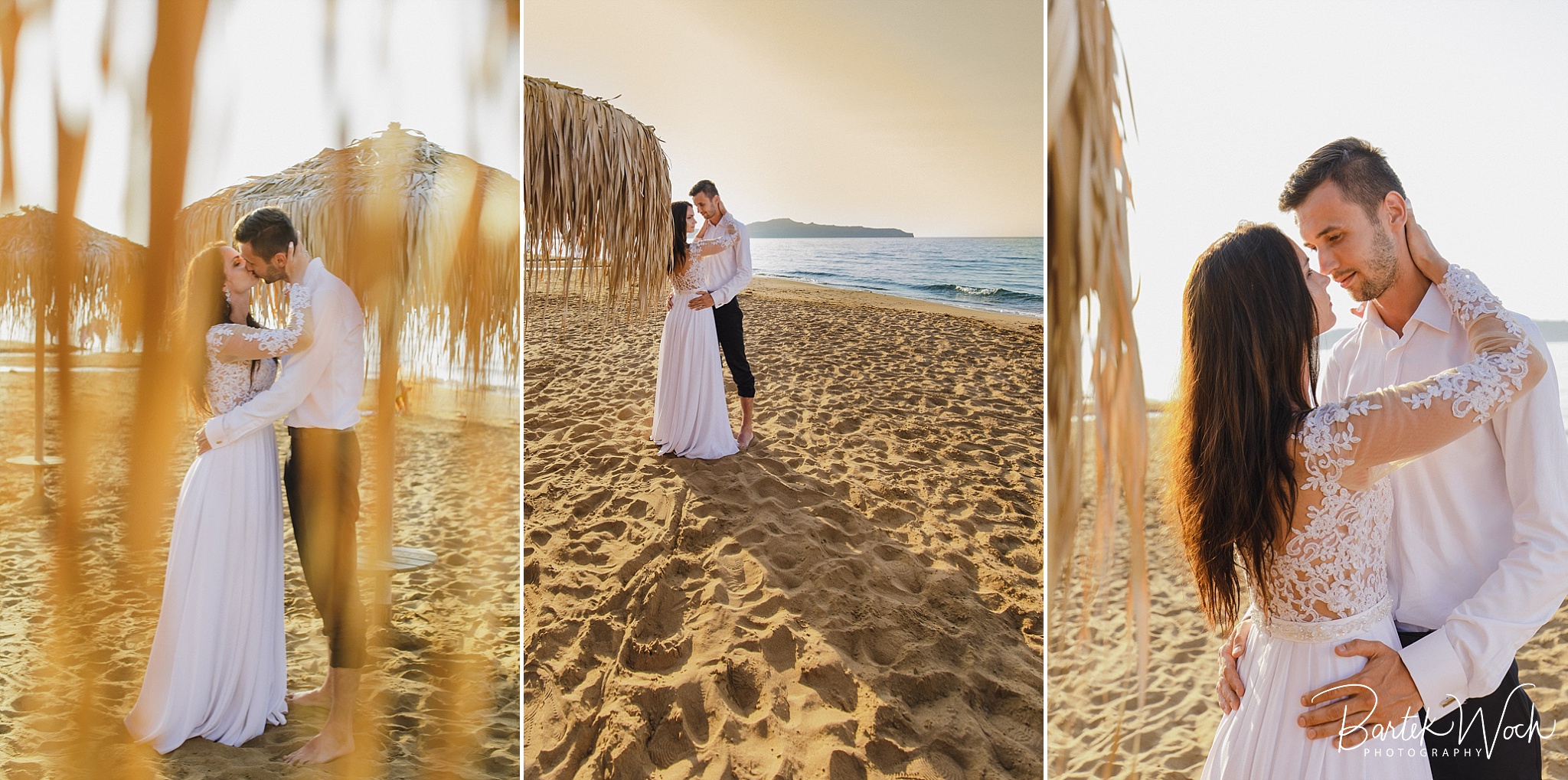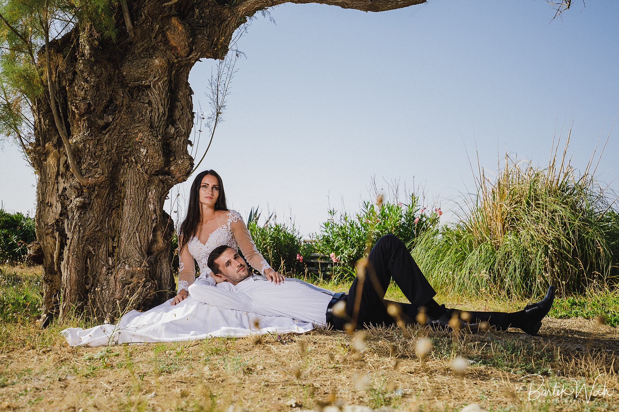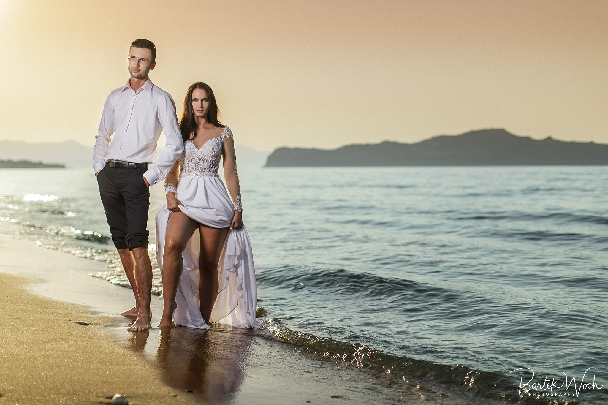 Wow ta sesja to była jedna z najbardziej hardcorowych przygód jakie mieliśmy. Zaczęło się od tego, że miałem zaplanowany normalny zwykły urlop zaraz po weselu Hani i Marcina i jakoś tak na koniec dnia jak już się zbierałem w czasie pożegnania padło „to wpadnijcie do mnie na sesję” i jak już widzicie po zdjęciach, Hania z Marcinem zorganizowali resztę. Nie założyliśmy jednak tego, że będziemy od siebie tak daleko, bo Hania mieszkała obok Chanii (zauważacie zależność? ;P ) a my po zupełnie przeciwnej stronie u dołu wyspy. No cóż, słowo się rzekło, sprzęt wzięty, oni ciuchy też już mieli więc grzechem byłoby nie skorzystać. Dzięki temu miałem okazję objechać całą wyspę, co też było niezłą przygodą jednak jak już dojechałem pod hotel Hani i Marcina okazało się, że w tym regionie ba… na tej ulicy kilka hoteli ma taką nazwę i niektóre były tak „skitrane” pomiędzy innymi że nie dało się do nich nawet podjechać samochodem. I tak dzwoniliśmy do siebie, mówiąc gdzie aktualnie stoimy i za nic na świecie nie mogliśmy się znaleźć a z nieba lał się 45 stopniowy żar a oni jeszcze naubierani. Na szczęście już w momencie kiedy prawie chcieliśmy zrezygnować po prostu wpadliśmy na siebie na środku ulicy! Oczywiście jak zawsze wcześniej mieliśmy przemyślane gdzie pojedziemy dlatego nie martwiliśmy się czasem. Czasem zaczęliśmy się martwić w momencie kiedy już wracaliśmy po sesji od razu na lotnisko. Bo zapomniałem wam wspomnieć, że wieczorem tego dnia, mieliśmy wylot do domu, no więc trzeba było nagiąć trochę przepisy i kiedy weszliśmy na lotnisko okazało się, że do odprawy stała przed nami jedynie para emerytów :O Na szczęście tamtejsze lotnisko było na tyle prymitywne, że nikt nawet tego nie zauważył i udało się… Zdążyliśmy w ostatniej minucie. Byliśmy spóźnieni do tego stopnia, że 15 minut później kołowaliśmy już przed startem. Tak, właśnie tak wygląda ta praca 😀 jak tego nie kochać. Ok, teraz pora na zdjęcia, miłego oglądania.