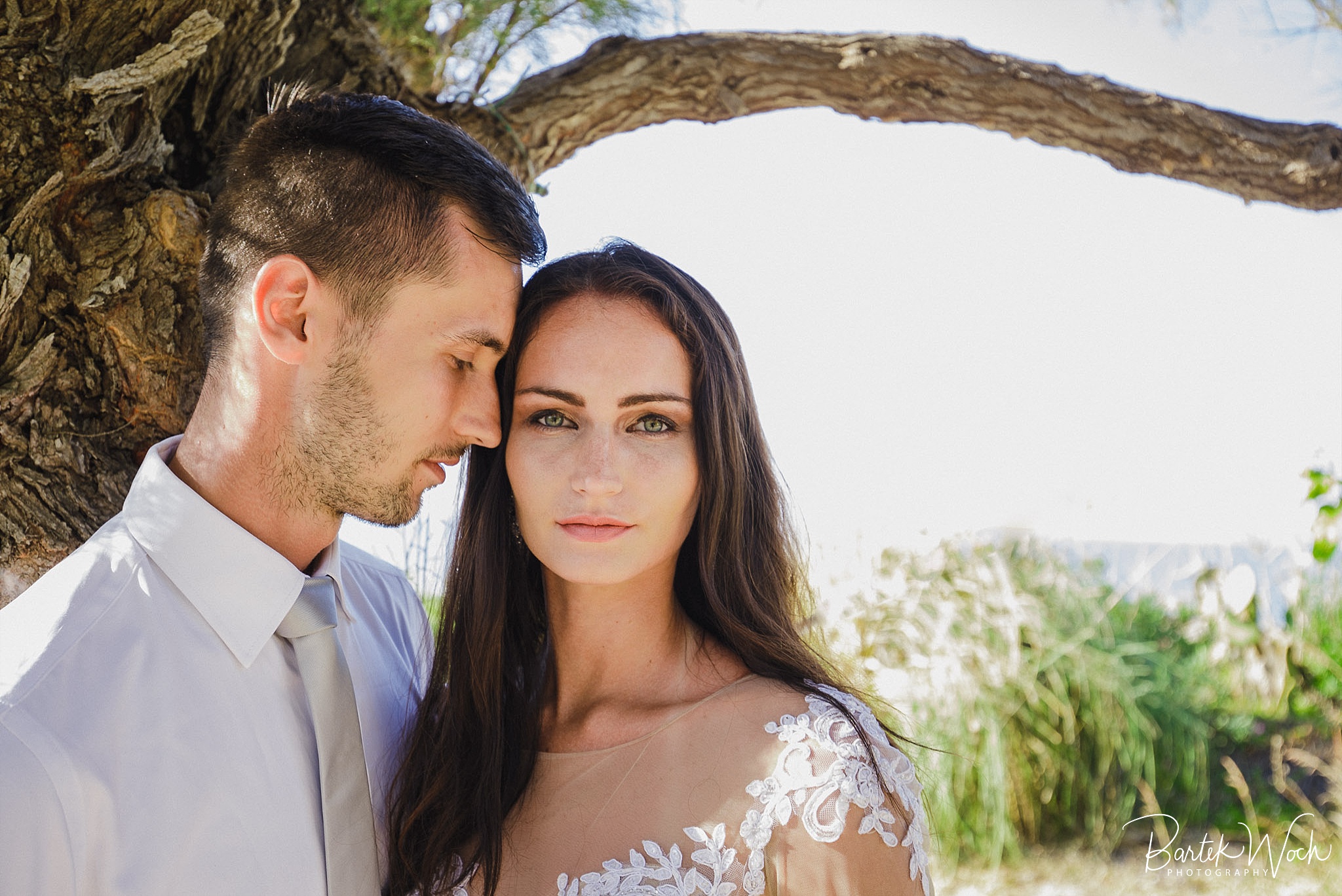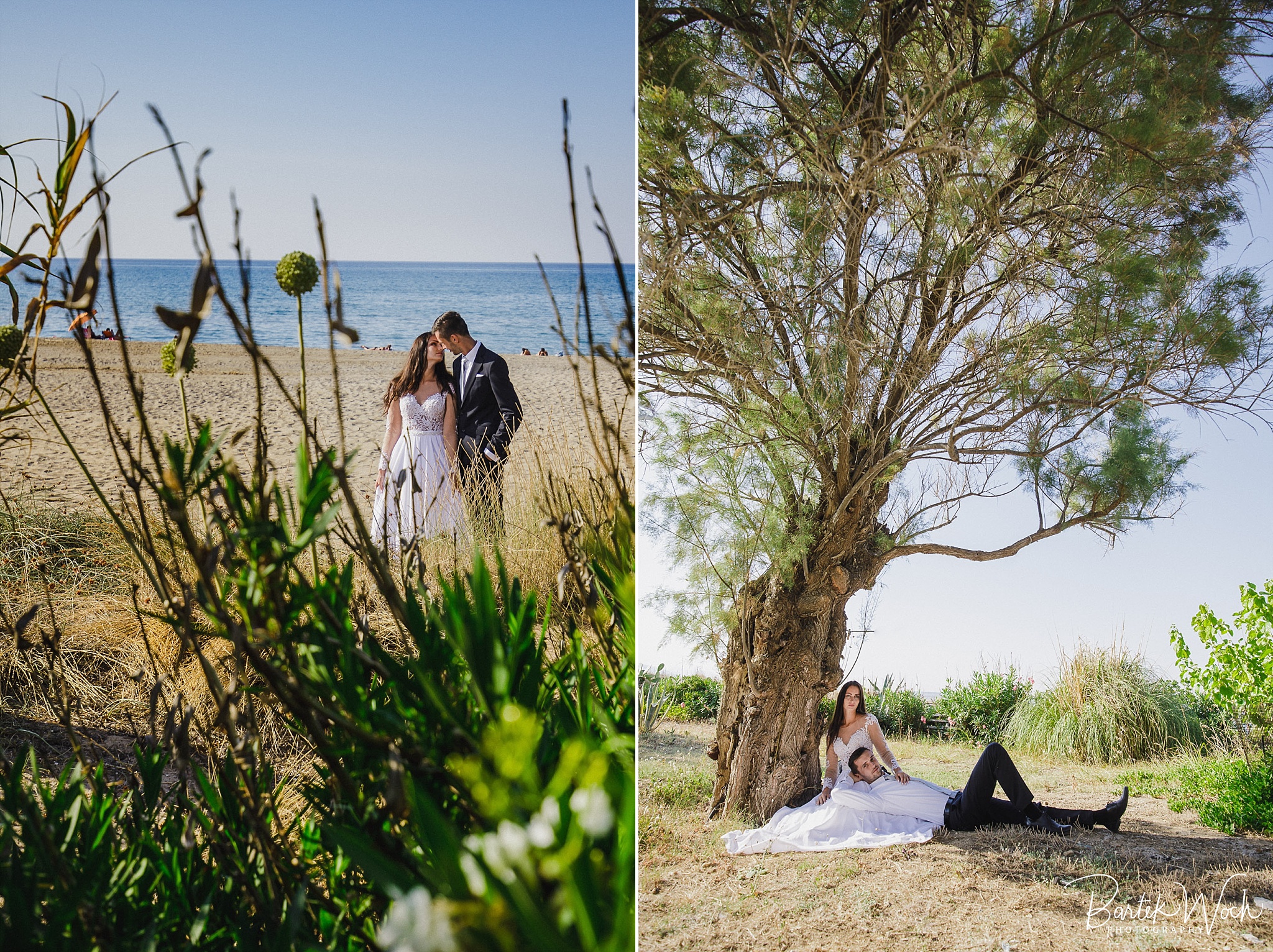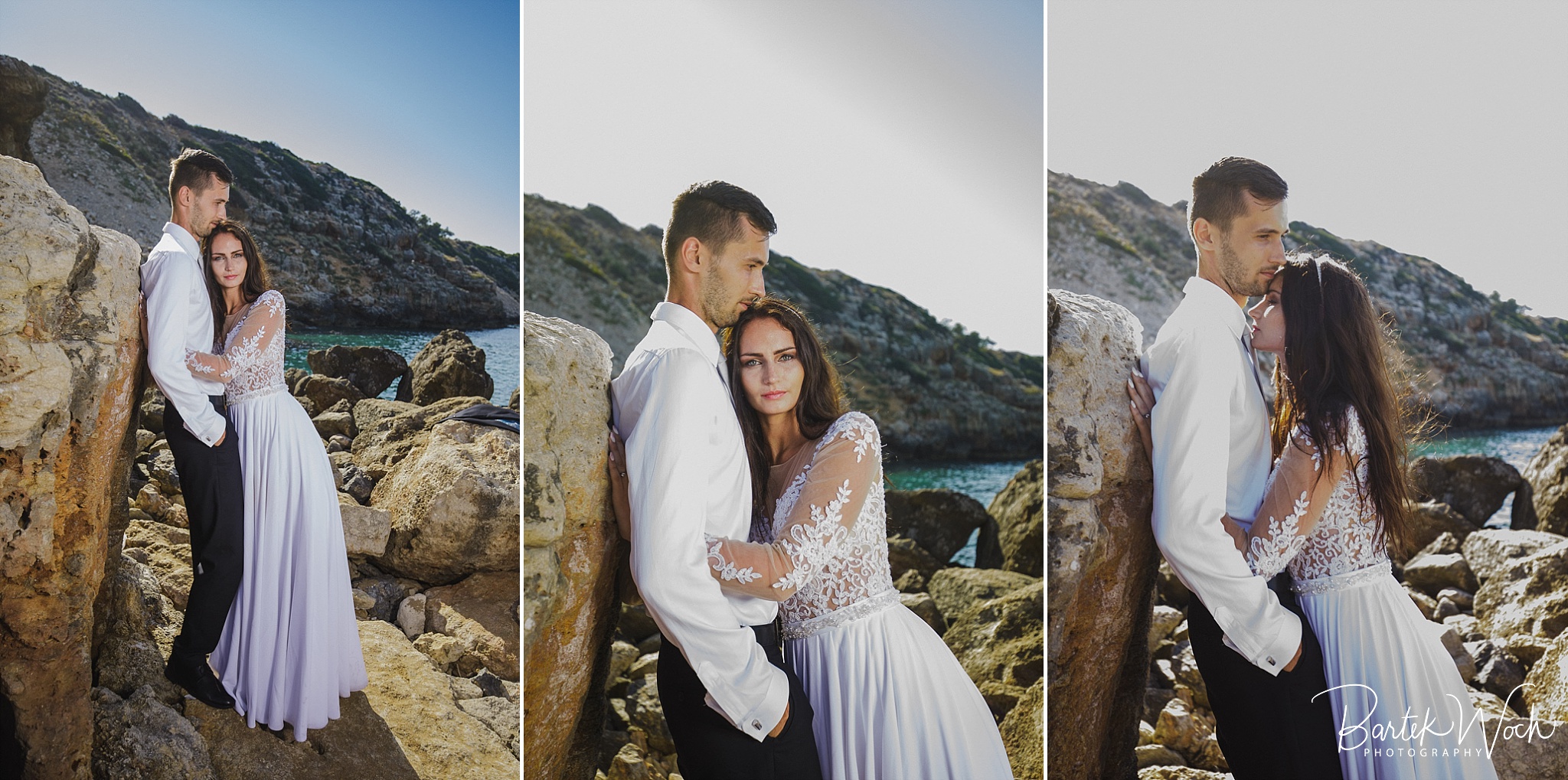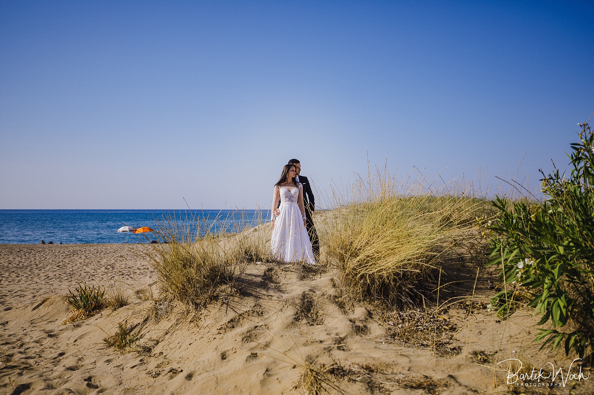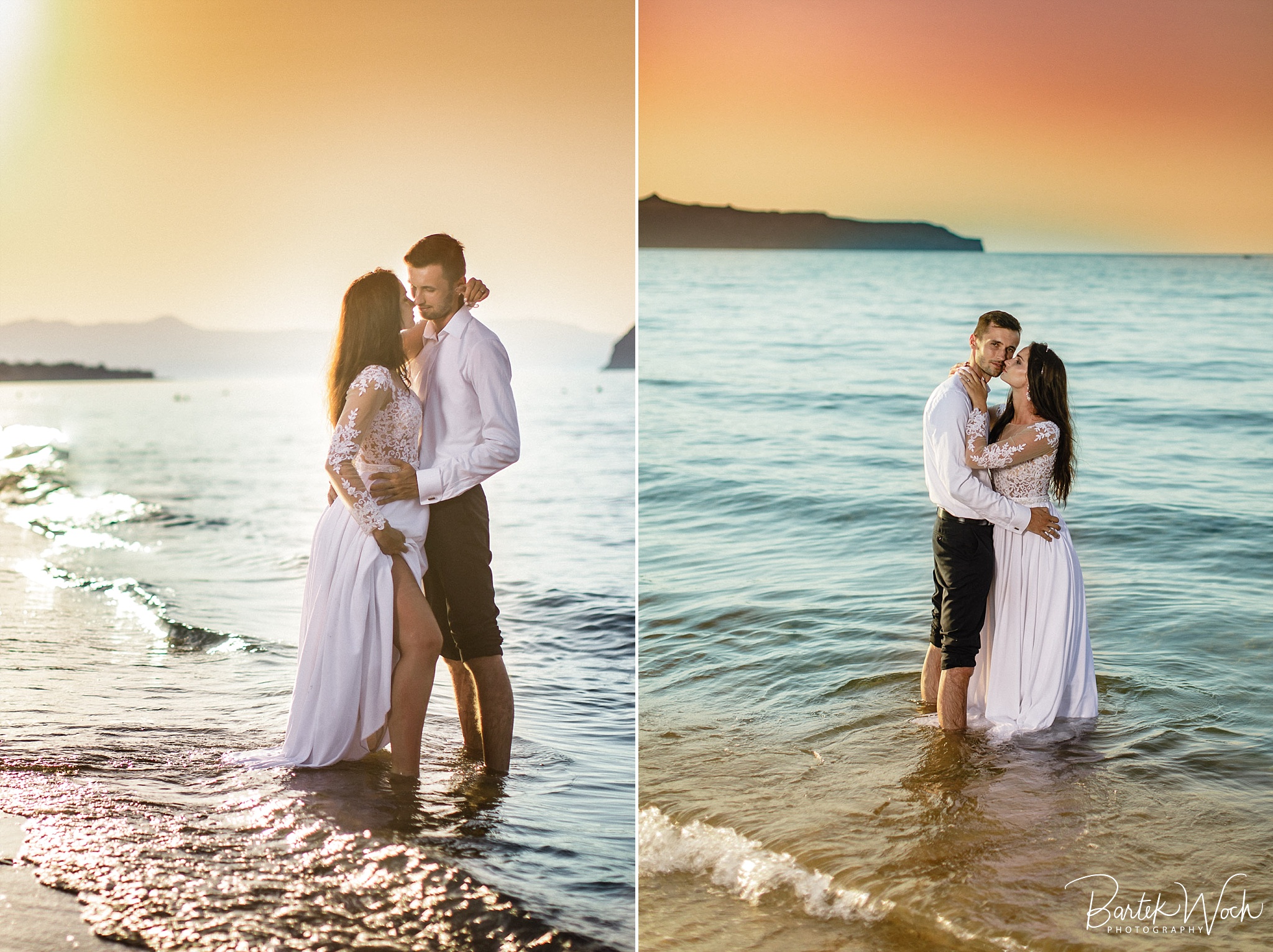 Wow ta sesja to była jedna z najbardziej hardcorowych przygód jakie mieliśmy. Zaczęło się od tego, że miałem zaplanowany normalny zwykły urlop zaraz po weselu Hani i Marcina i jakoś tak na koniec dnia jak już się zbierałem w czasie pożegnania padło „to wpadnijcie do mnie na sesję” i jak już widzicie po zdjęciach, Hania z Marcinem zorganizowali resztę. Nie założyliśmy jednak tego, że będziemy od siebie tak daleko, bo Hania mieszkała obok Chanii (zauważacie zależność? ;P ) a my po zupełnie przeciwnej stronie u dołu wyspy. No cóż, słowo się rzekło, sprzęt wzięty, oni ciuchy też już mieli więc grzechem byłoby nie skorzystać. Dzięki temu miałem okazję objechać całą wyspę, co też było niezłą przygodą jednak jak już dojechałem pod hotel Hani i Marcina okazało się, że w tym regionie ba… na tej ulicy kilka hoteli ma taką nazwę i niektóre były tak „skitrane” pomiędzy innymi że nie dało się do nich nawet podjechać samochodem. I tak dzwoniliśmy do siebie, mówiąc gdzie aktualnie stoimy i za nic na świecie nie mogliśmy się znaleźć a z nieba lał się 45 stopniowy żar a oni jeszcze naubierani. Na szczęście już w momencie kiedy prawie chcieliśmy zrezygnować po prostu wpadliśmy na siebie na środku ulicy! Oczywiście jak zawsze wcześniej mieliśmy przemyślane gdzie pojedziemy dlatego nie martwiliśmy się czasem. Czasem zaczęliśmy się martwić w momencie kiedy już wracaliśmy po sesji od razu na lotnisko. Bo zapomniałem wam wspomnieć, że wieczorem tego dnia, mieliśmy wylot do domu, no więc trzeba było nagiąć trochę przepisy i kiedy weszliśmy na lotnisko okazało się, że do odprawy stała przed nami jedynie para emerytów :O Na szczęście tamtejsze lotnisko było na tyle prymitywne, że nikt nawet tego nie zauważył i udało się… Zdążyliśmy w ostatniej minucie. Byliśmy spóźnieni do tego stopnia, że 15 minut później kołowaliśmy już przed startem. Tak, właśnie tak wygląda ta praca 😀 jak tego nie kochać. Ok, teraz pora na zdjęcia, miłego oglądania.