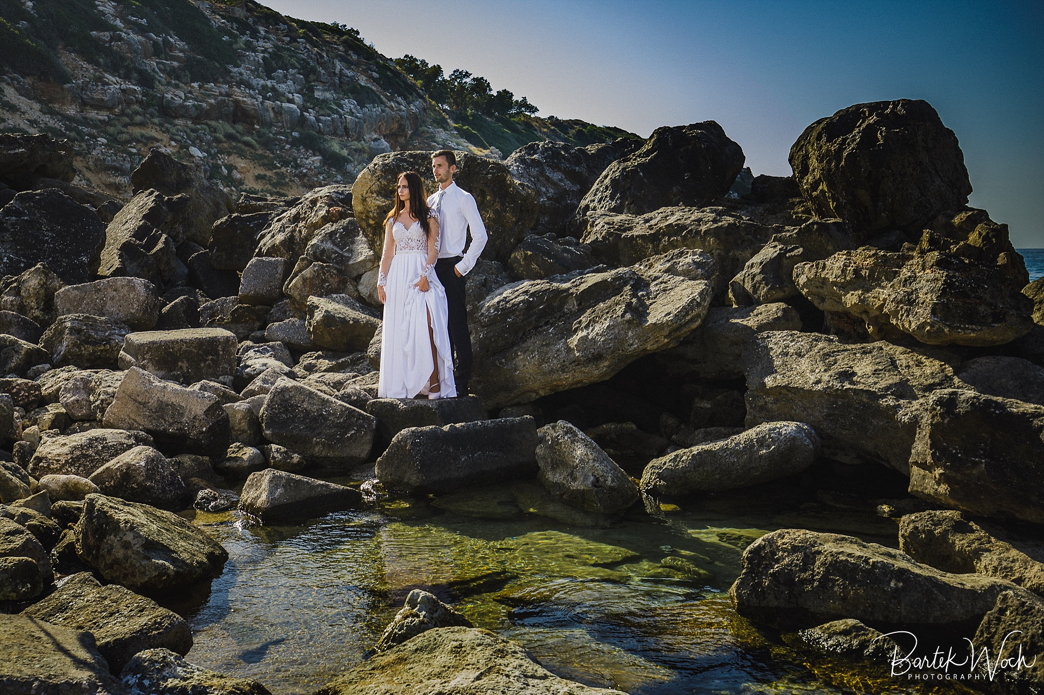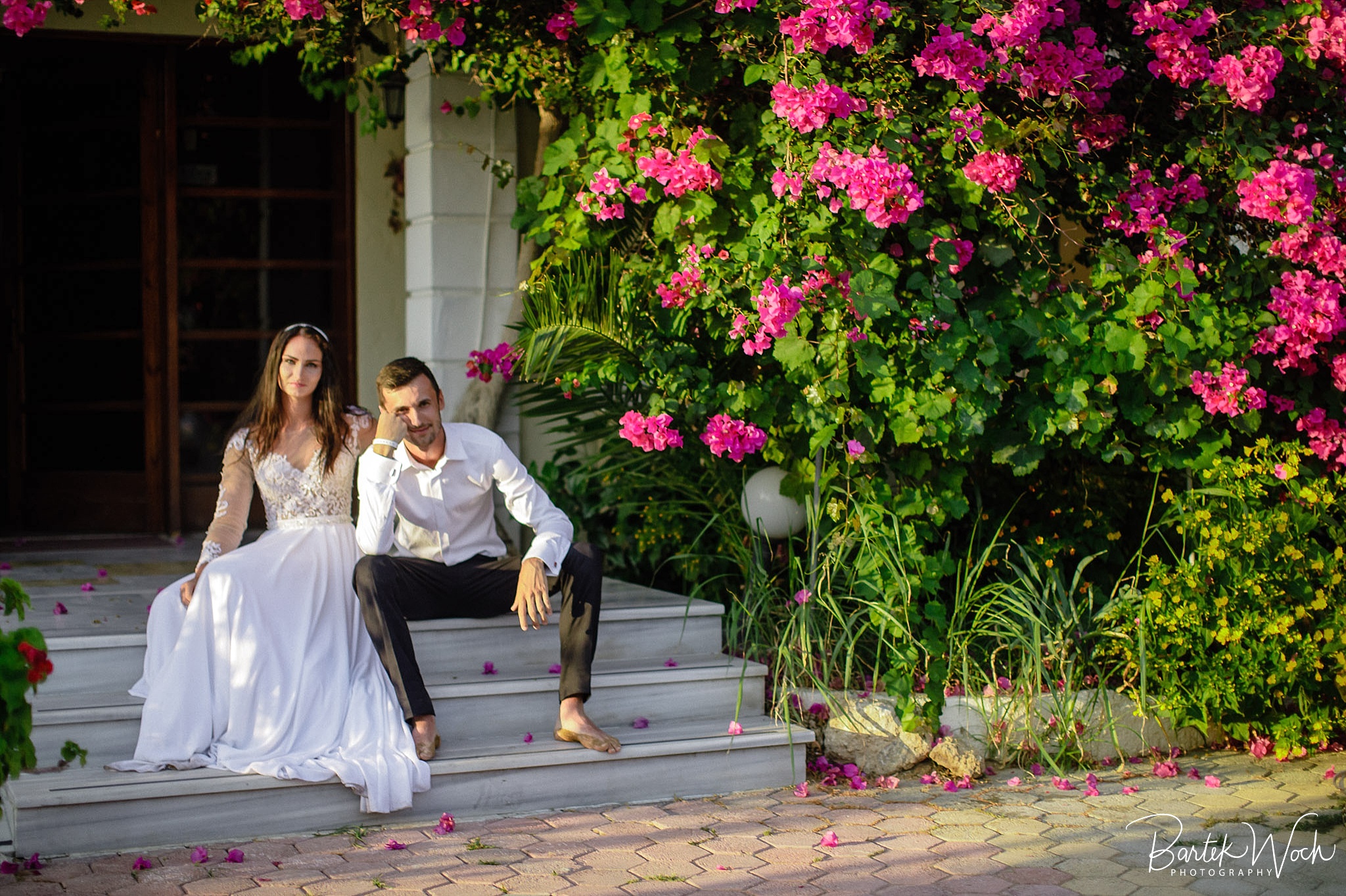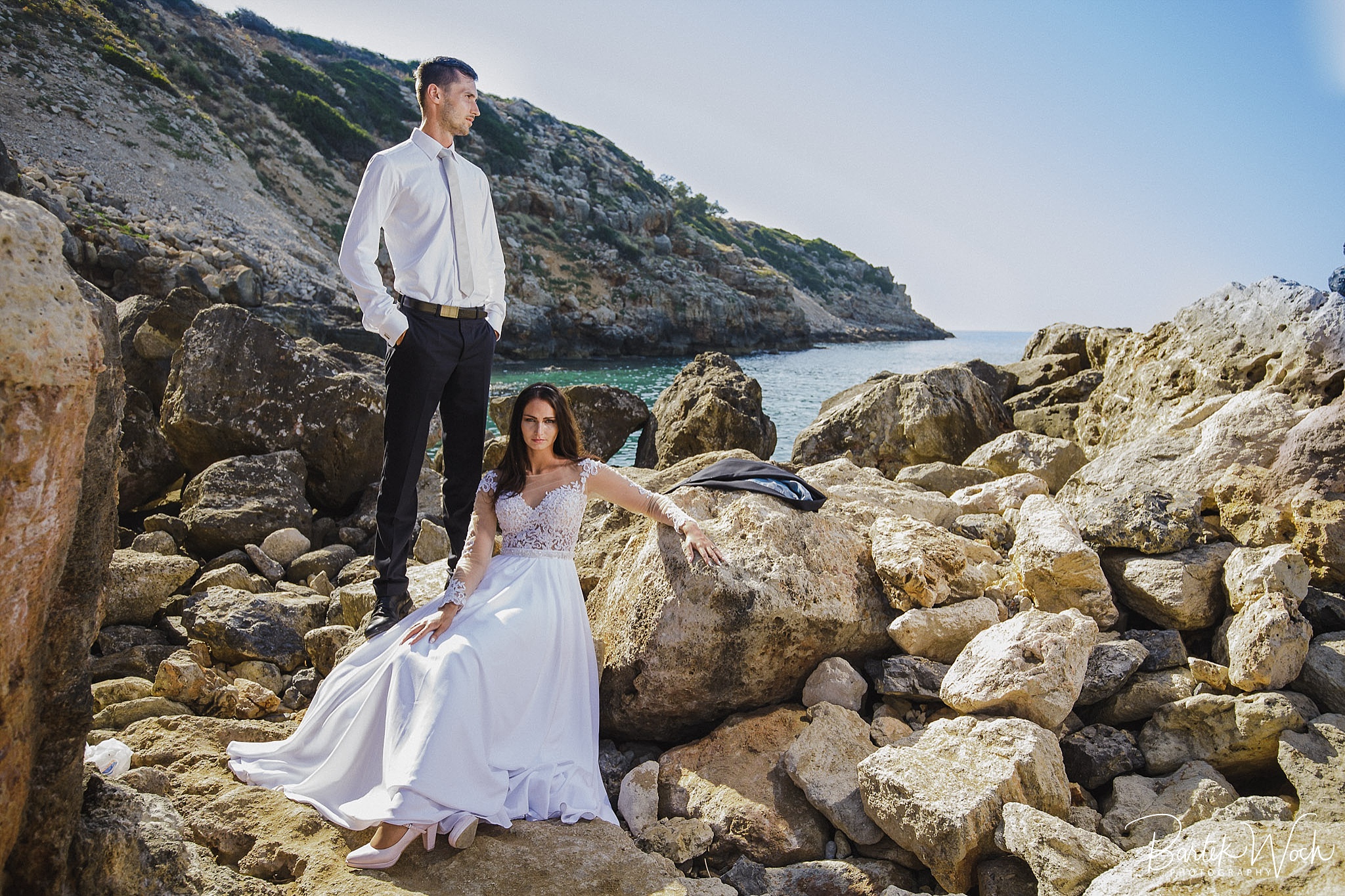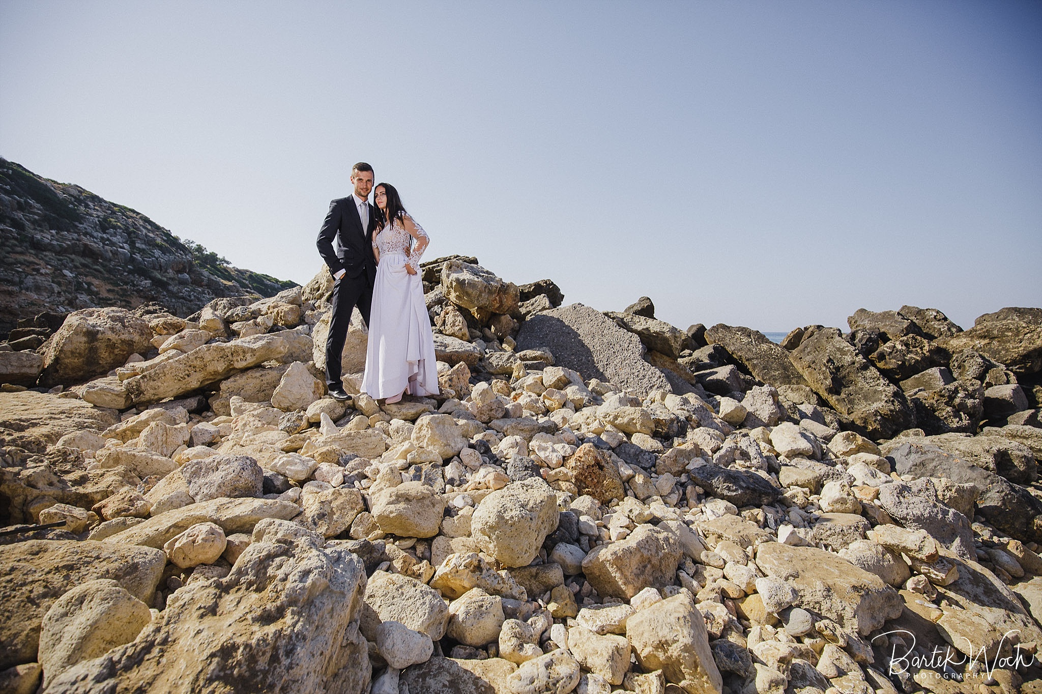 Wow ta sesja to była jedna z najbardziej hardcorowych przygód jakie mieliśmy. Zaczęło się od tego, że miałem zaplanowany normalny zwykły urlop zaraz po weselu Hani i Marcina i jakoś tak na koniec dnia jak już się zbierałem w czasie pożegnania padło „to wpadnijcie do mnie na sesję” i jak już widzicie po zdjęciach, Hania z Marcinem zorganizowali resztę. Nie założyliśmy jednak tego, że będziemy od siebie tak daleko, bo Hania mieszkała obok Chanii (zauważacie zależność? ;P ) a my po zupełnie przeciwnej stronie u dołu wyspy. No cóż, słowo się rzekło, sprzęt wzięty, oni ciuchy też już mieli więc grzechem byłoby nie skorzystać. Dzięki temu miałem okazję objechać całą wyspę, co też było niezłą przygodą jednak jak już dojechałem pod hotel Hani i Marcina okazało się, że w tym regionie ba… na tej ulicy kilka hoteli ma taką nazwę i niektóre były tak „skitrane” pomiędzy innymi że nie dało się do nich nawet podjechać samochodem. I tak dzwoniliśmy do siebie, mówiąc gdzie aktualnie stoimy i za nic na świecie nie mogliśmy się znaleźć a z nieba lał się 45 stopniowy żar a oni jeszcze naubierani. Na szczęście już w momencie kiedy prawie chcieliśmy zrezygnować po prostu wpadliśmy na siebie na środku ulicy! Oczywiście jak zawsze wcześniej mieliśmy przemyślane gdzie pojedziemy dlatego nie martwiliśmy się czasem. Czasem zaczęliśmy się martwić w momencie kiedy już wracaliśmy po sesji od razu na lotnisko. Bo zapomniałem wam wspomnieć, że wieczorem tego dnia, mieliśmy wylot do domu, no więc trzeba było nagiąć trochę przepisy i kiedy weszliśmy na lotnisko okazało się, że do odprawy stała przed nami jedynie para emerytów :O Na szczęście tamtejsze lotnisko było na tyle prymitywne, że nikt nawet tego nie zauważył i udało się… Zdążyliśmy w ostatniej minucie. Byliśmy spóźnieni do tego stopnia, że 15 minut później kołowaliśmy już przed startem. Tak, właśnie tak wygląda ta praca 😀 jak tego nie kochać. Ok, teraz pora na zdjęcia, miłego oglądania.