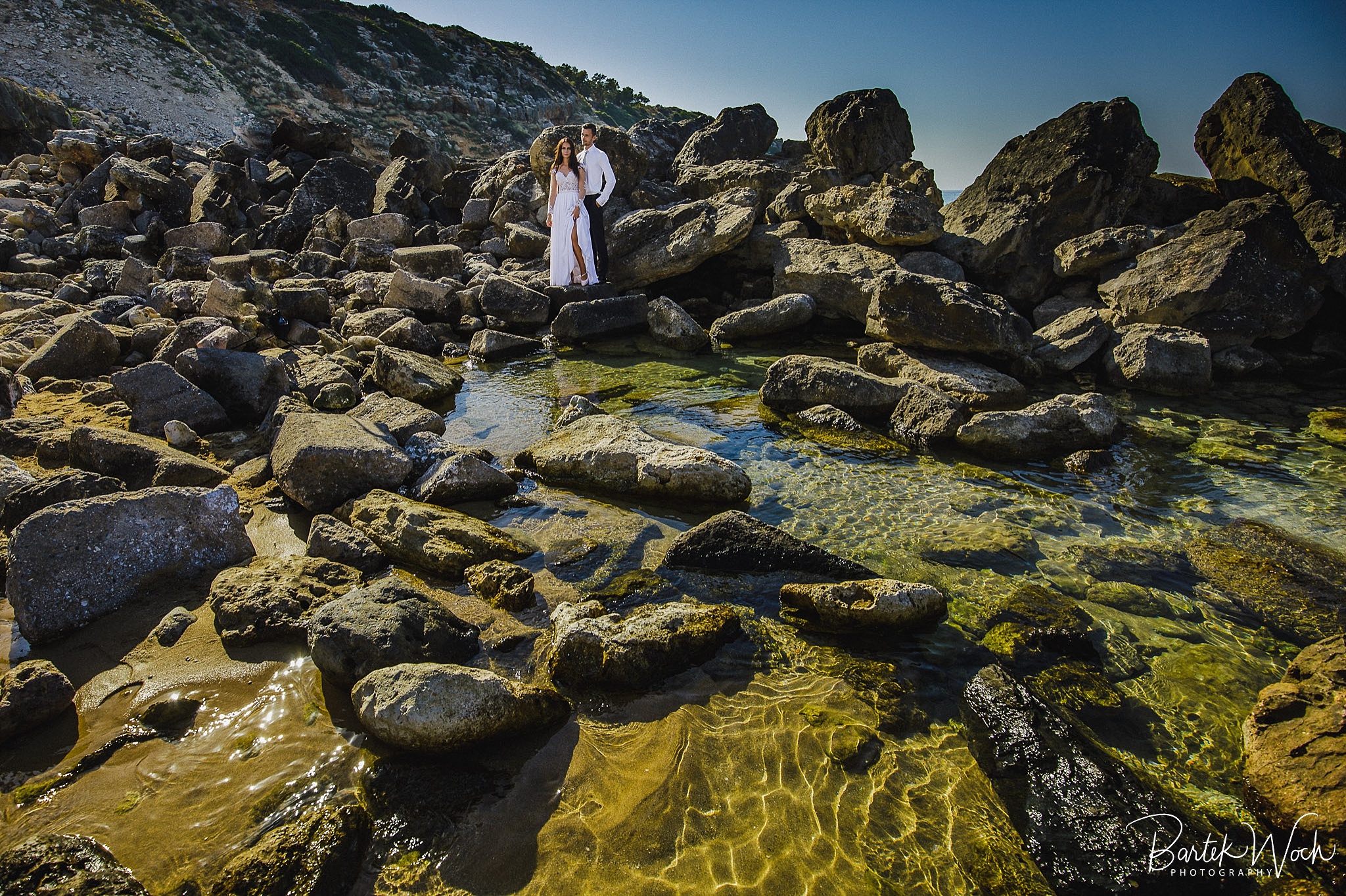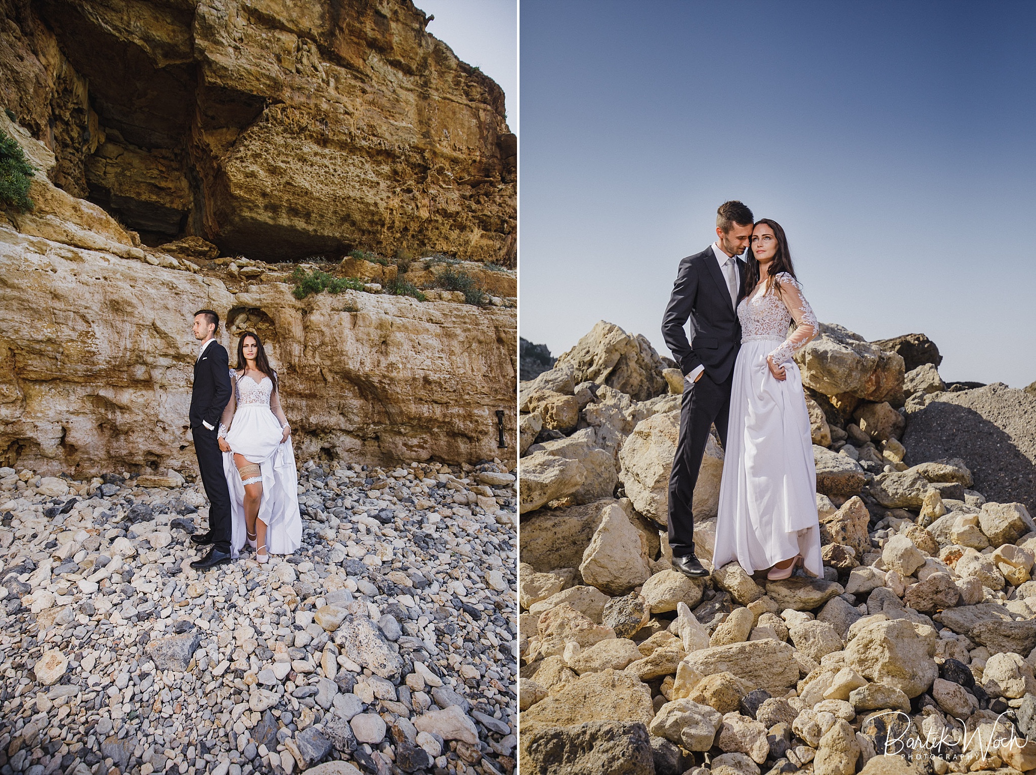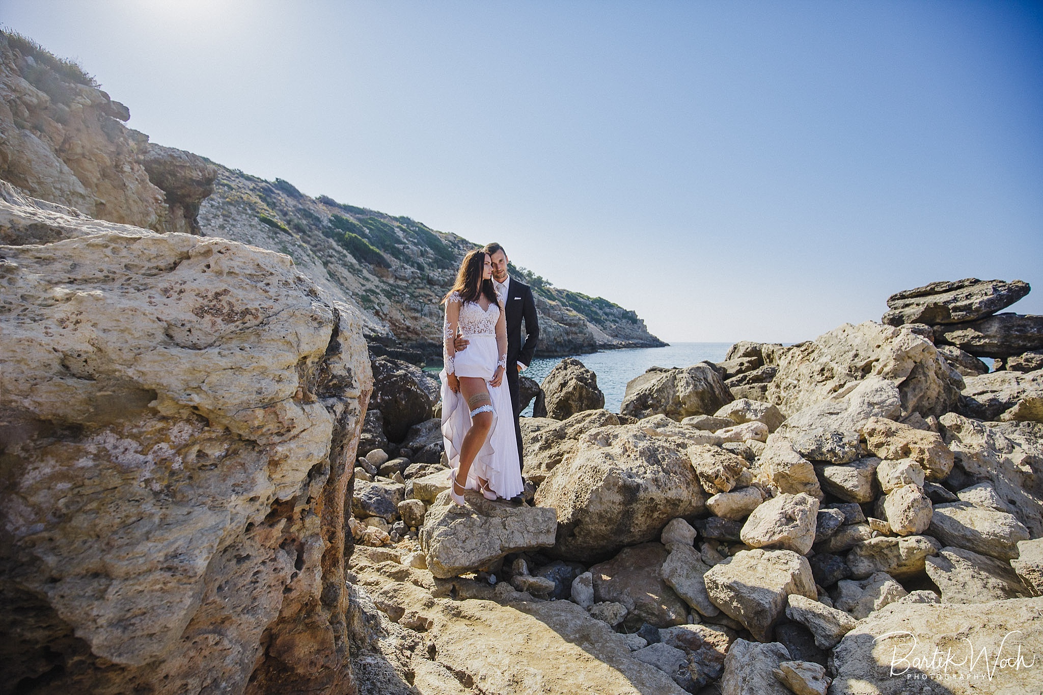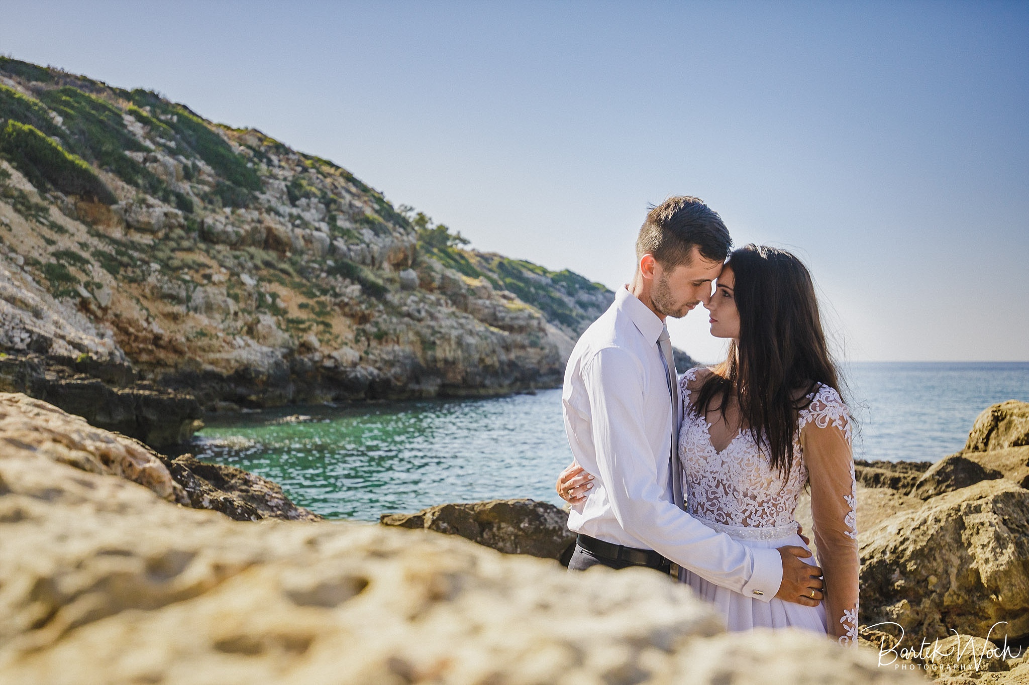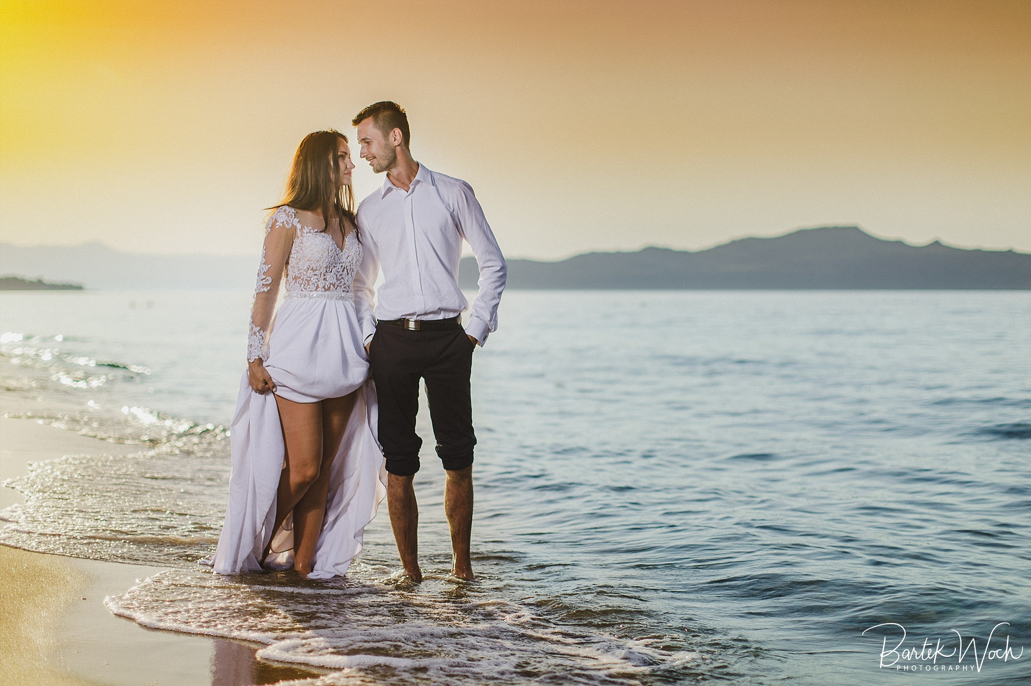 Wow ta sesja to była jedna z najbardziej hardcorowych przygód jakie mieliśmy. Zaczęło się od tego, że miałem zaplanowany normalny zwykły urlop zaraz po weselu Hani i Marcina i jakoś tak na koniec dnia jak już się zbierałem w czasie pożegnania padło „to wpadnijcie do mnie na sesję” i jak już widzicie po zdjęciach, Hania z Marcinem zorganizowali resztę. Nie założyliśmy jednak tego, że będziemy od siebie tak daleko, bo Hania mieszkała obok Chanii (zauważacie zależność? ;P ) a my po zupełnie przeciwnej stronie u dołu wyspy. No cóż, słowo się rzekło, sprzęt wzięty, oni ciuchy też już mieli więc grzechem byłoby nie skorzystać. Dzięki temu miałem okazję objechać całą wyspę, co też było niezłą przygodą jednak jak już dojechałem pod hotel Hani i Marcina okazało się, że w tym regionie ba… na tej ulicy kilka hoteli ma taką nazwę i niektóre były tak „skitrane” pomiędzy innymi że nie dało się do nich nawet podjechać samochodem. I tak dzwoniliśmy do siebie, mówiąc gdzie aktualnie stoimy i za nic na świecie nie mogliśmy się znaleźć a z nieba lał się 45 stopniowy żar a oni jeszcze naubierani. Na szczęście już w momencie kiedy prawie chcieliśmy zrezygnować po prostu wpadliśmy na siebie na środku ulicy! Oczywiście jak zawsze wcześniej mieliśmy przemyślane gdzie pojedziemy dlatego nie martwiliśmy się czasem. Czasem zaczęliśmy się martwić w momencie kiedy już wracaliśmy po sesji od razu na lotnisko. Bo zapomniałem wam wspomnieć, że wieczorem tego dnia, mieliśmy wylot do domu, no więc trzeba było nagiąć trochę przepisy i kiedy weszliśmy na lotnisko okazało się, że do odprawy stała przed nami jedynie para emerytów :O Na szczęście tamtejsze lotnisko było na tyle prymitywne, że nikt nawet tego nie zauważył i udało się… Zdążyliśmy w ostatniej minucie. Byliśmy spóźnieni do tego stopnia, że 15 minut później kołowaliśmy już przed startem. Tak, właśnie tak wygląda ta praca 😀 jak tego nie kochać. Ok, teraz pora na zdjęcia, miłego oglądania.